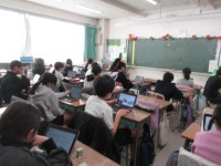 4年生は、社会科の授業でした。自分たちが作った都道府県クイズを出し合います。小グ...