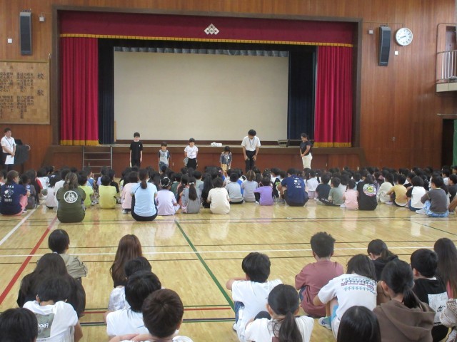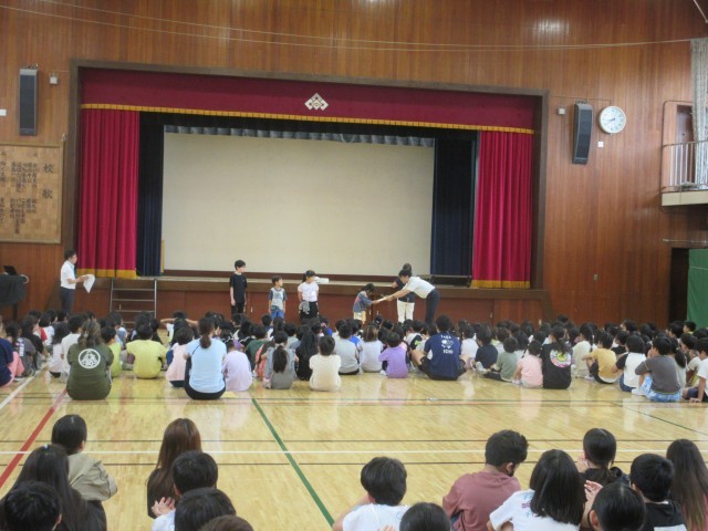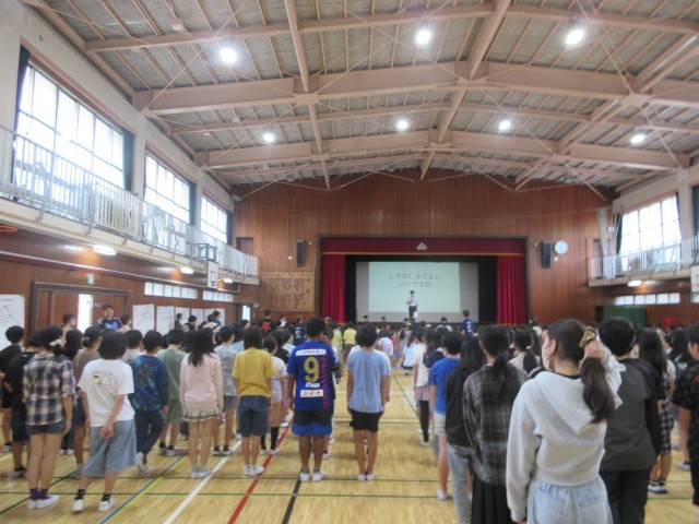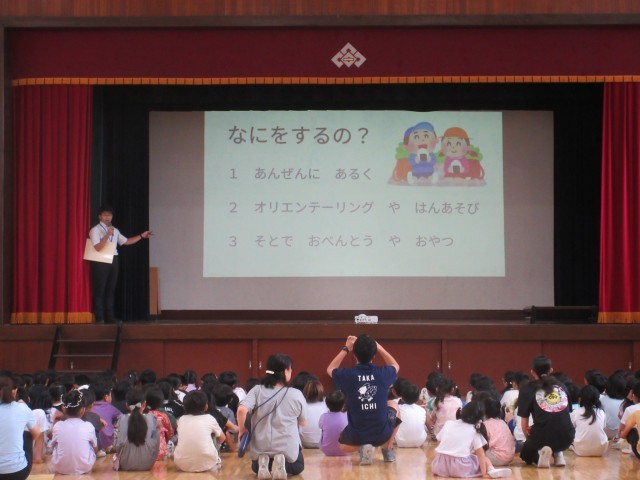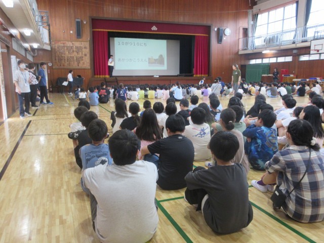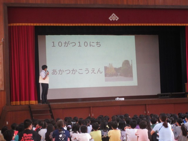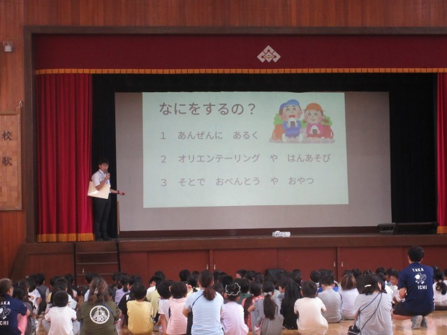 児童朝会は、10月10日(金)にある全校遠足について、校長先生からお話がありました。