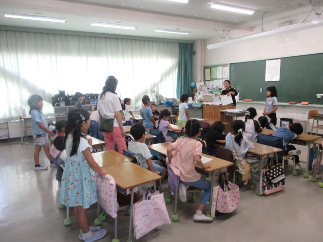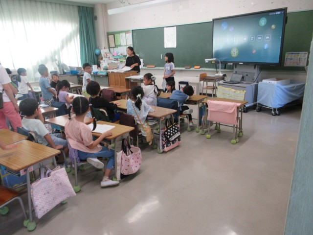 1年生は、朝の活動で宿題チェックと健康観察をしていました。