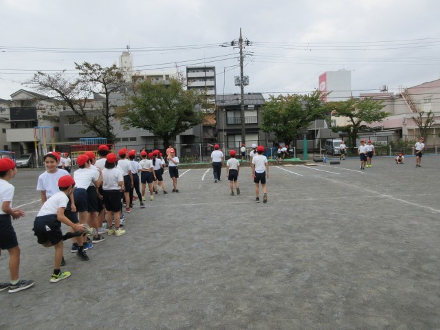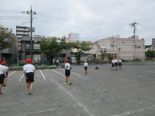 ポイントは、腕をしたから上に振り上げて、体全体で跳ぶことです。