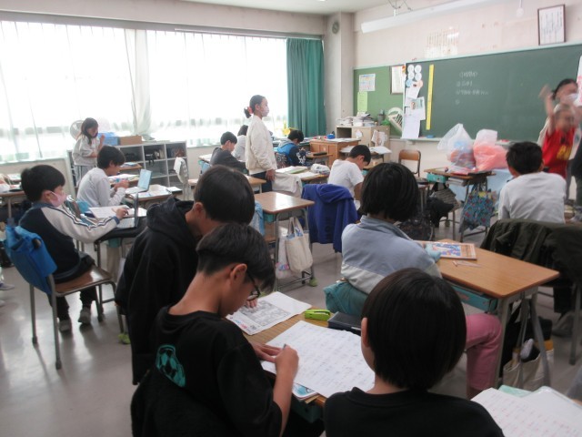 漢字50問テストの勉強、社会科の発表に向けたスライド作り。