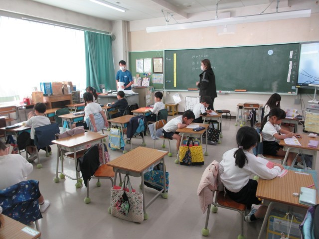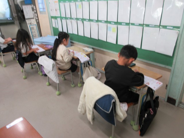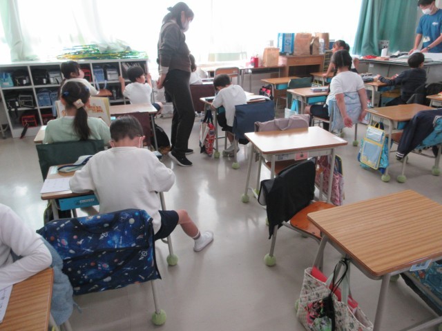 1年生は、漢字のテストでした。