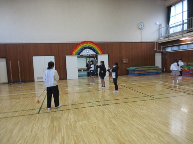 メジャーは、休み時間、現メジャーの6年生から直接指導してもらいながら練習しています。