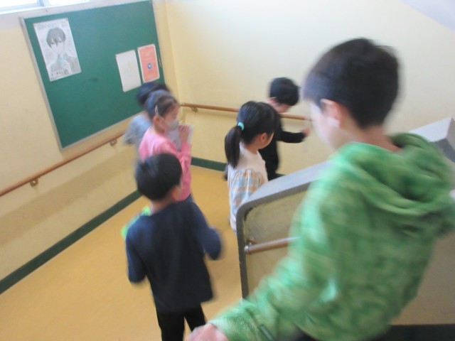 3年生は、みんなで階段を下りていたので「どうしたの?」