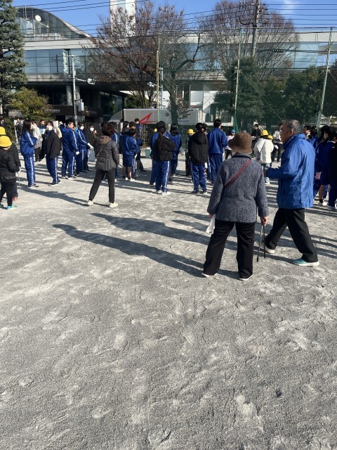 高一中の7年生、新河岸小の4年生、町会、地域センター、保護者とみんなで地域を掃除をします。