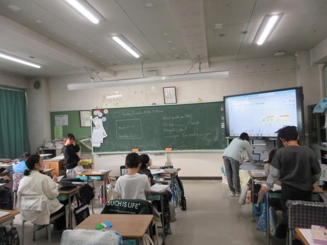 今日は、お店屋さんとお客さんに分かれて食べたいものを英語で注文し、値段を伝えます。
