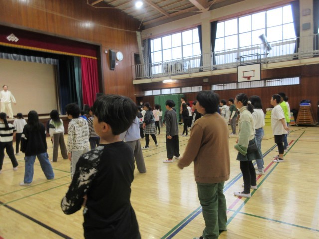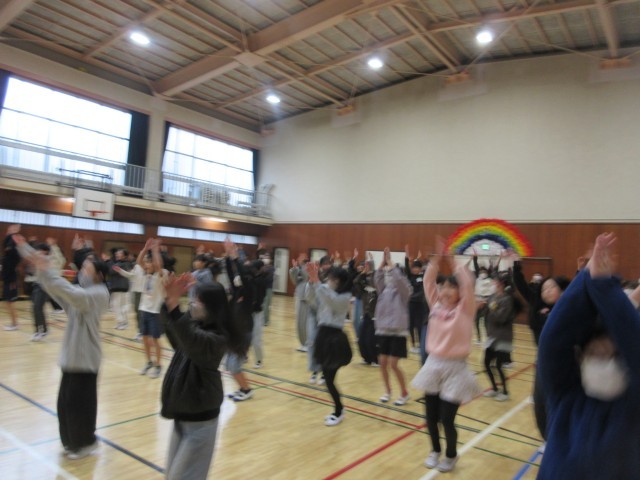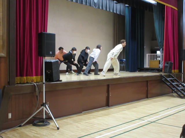 5・6年生にダンスを教えていただいたり、質問に答えていただいたりしました。