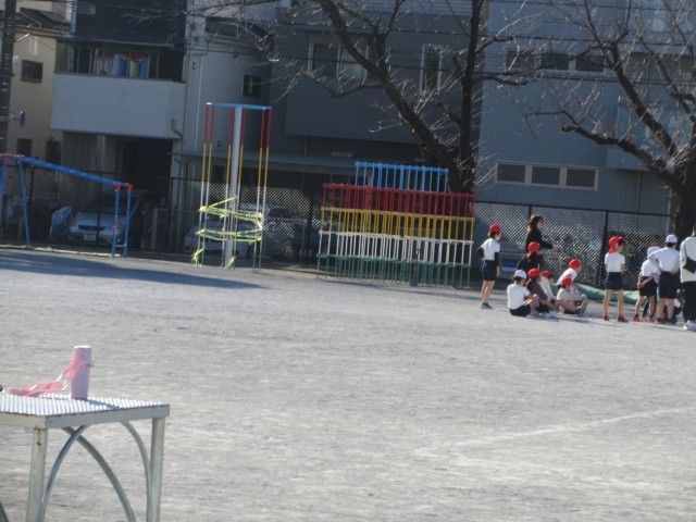 砂場に向かって遠くに跳ぼうと頑張っていました。