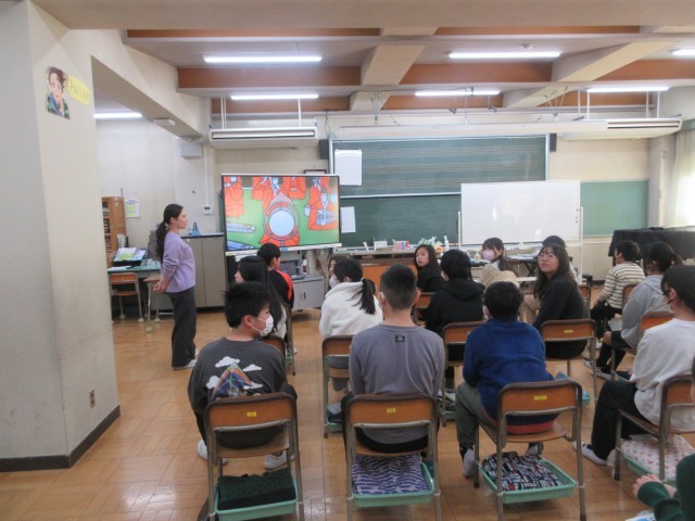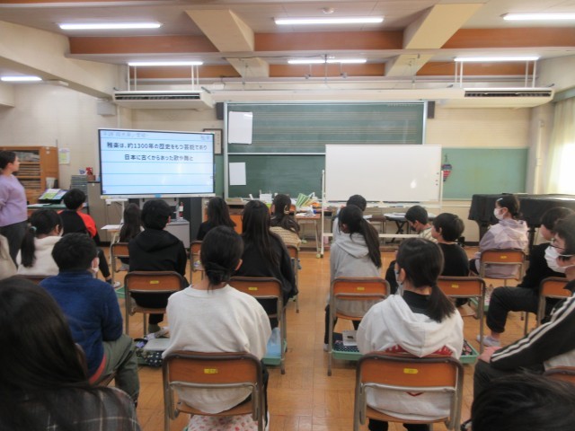 音楽の先生が歴史など、子どもたちに分かりやすいようにスライドを作ってくれていました。ありがたいです。
