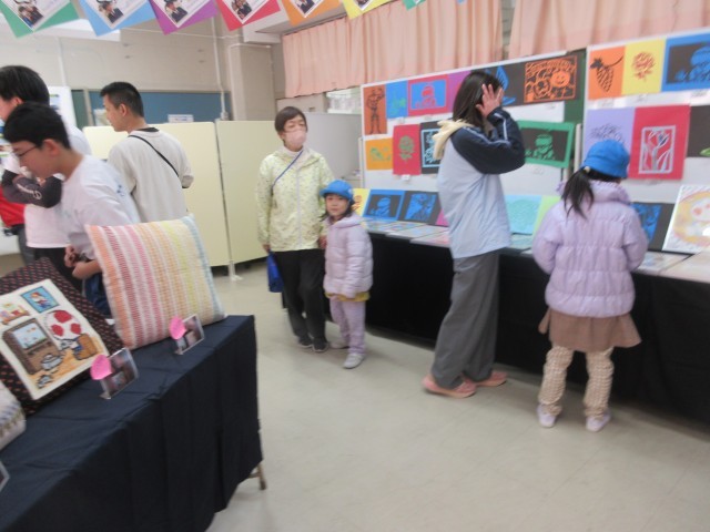 中学生の作品はどれも素晴らしく子どもたちは羨望の眼差しで作品をみていました。