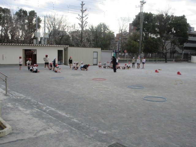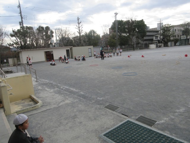 寒い中、走・跳の運動に取り組んでいました。