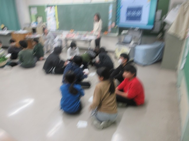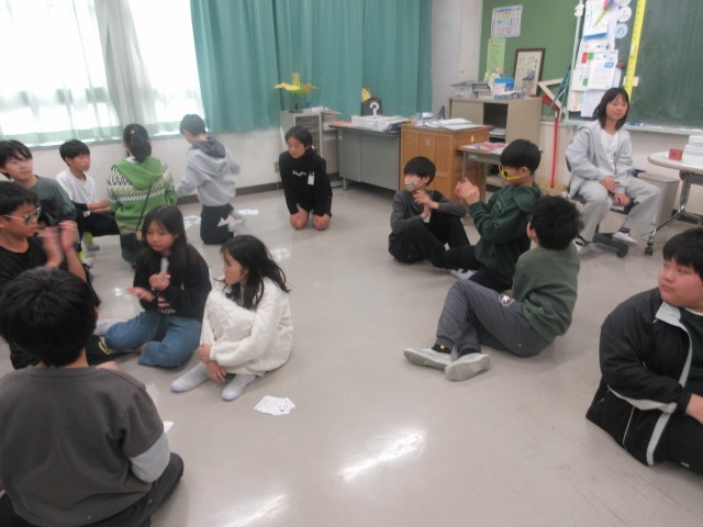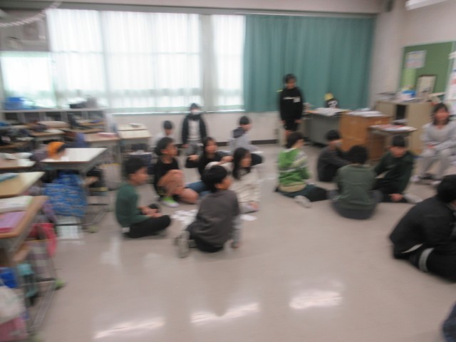 5年生は、今日から転入してきた友達の歓迎カルタ大会をしていました。