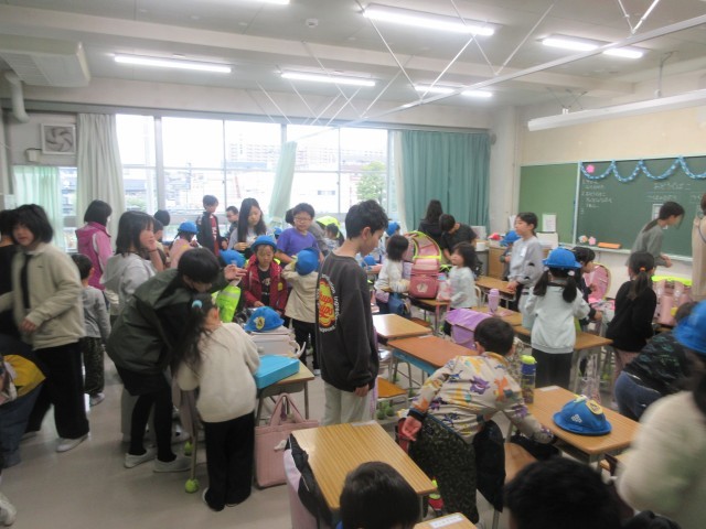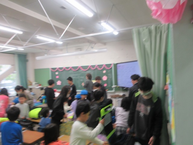 6年生は、1年生のために朝の支度のお手伝いをしてくれています。