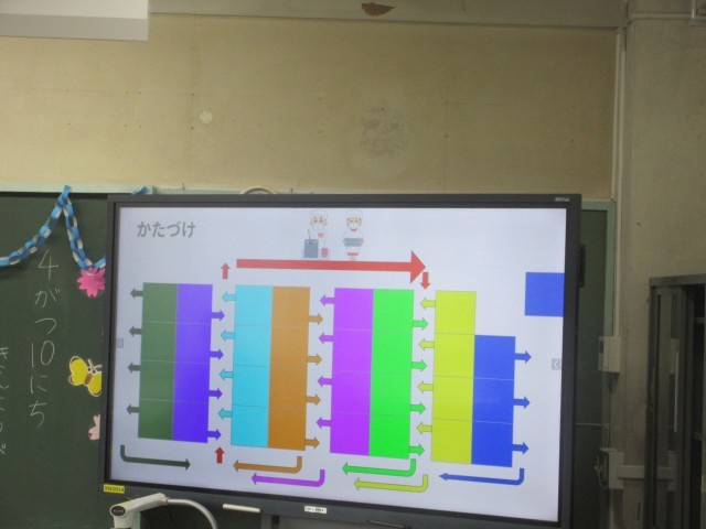 配膳や片付けの仕方について、丁寧に担任の先生から説明がありました。