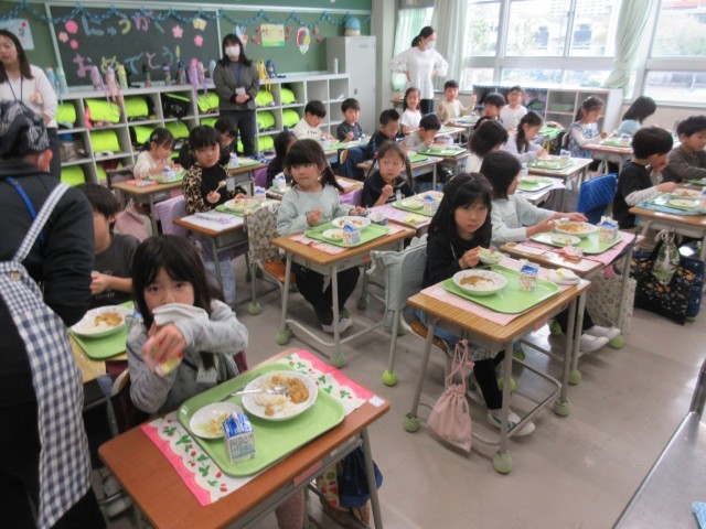 初めての給食は、カレーでした。