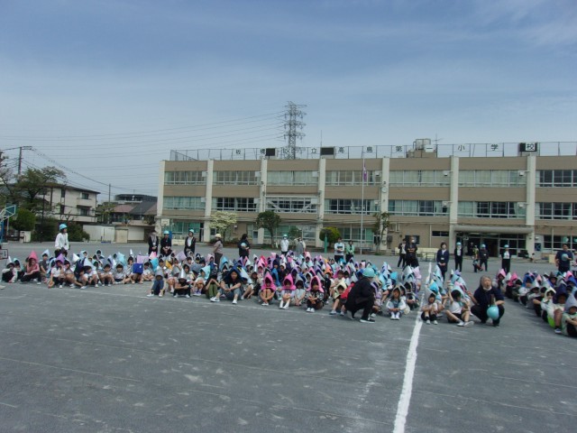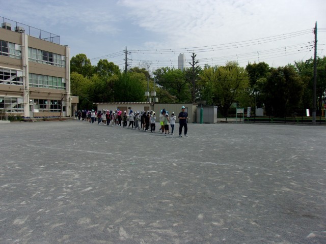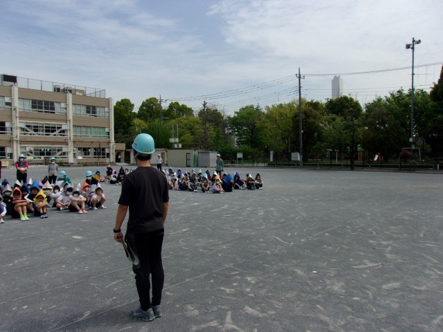 1年生は、他の学年の避難の仕方をよく見て学んでいました。