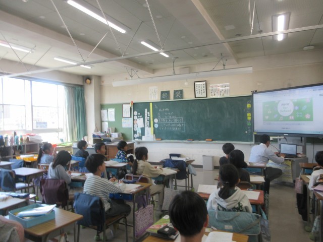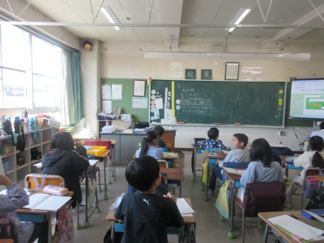隣の組の先生が理科を教えてくれています。