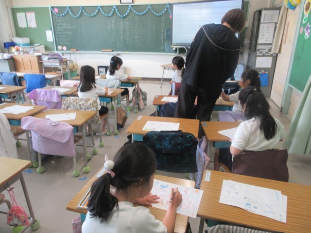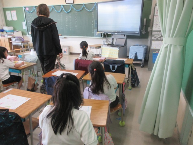 1年生は、心臓検診の傍ら、ひらがなの学習です。