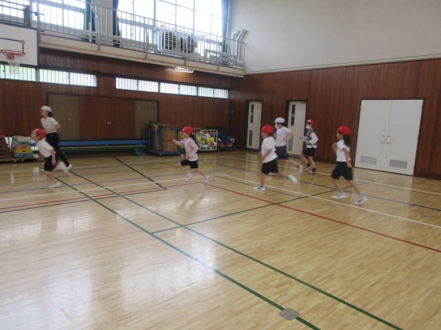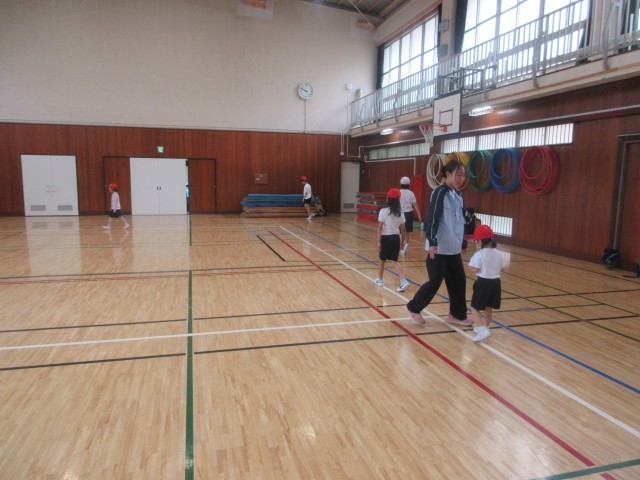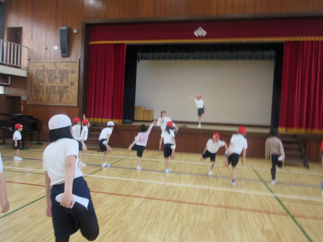 リズムに合わせて楽しく体を動かしました。