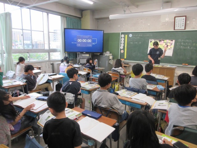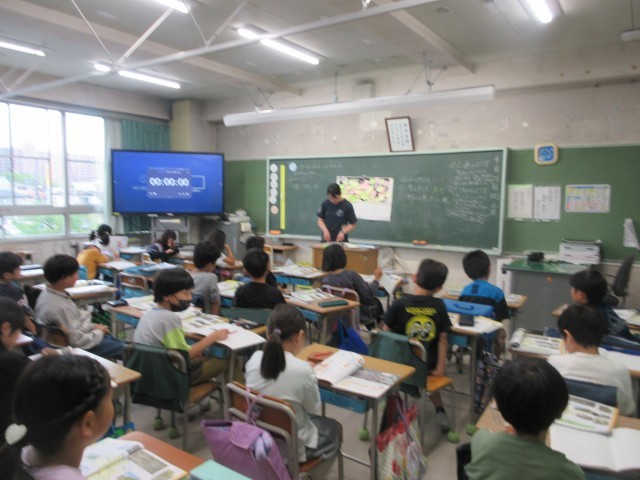 3年生は、隣のクラスの先生による社会科の授業でした。