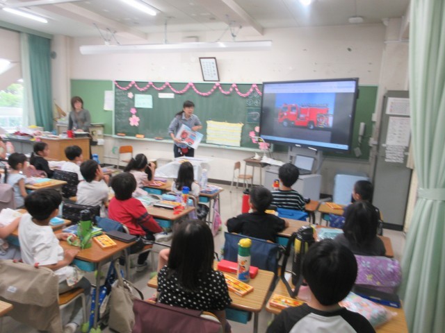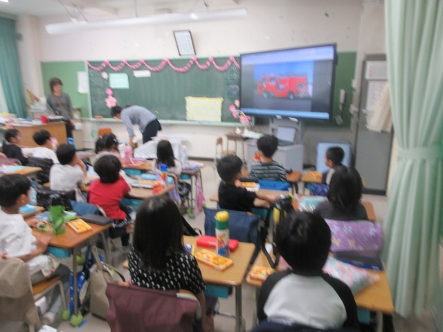 1年生は、消防写生会の事前学習です。