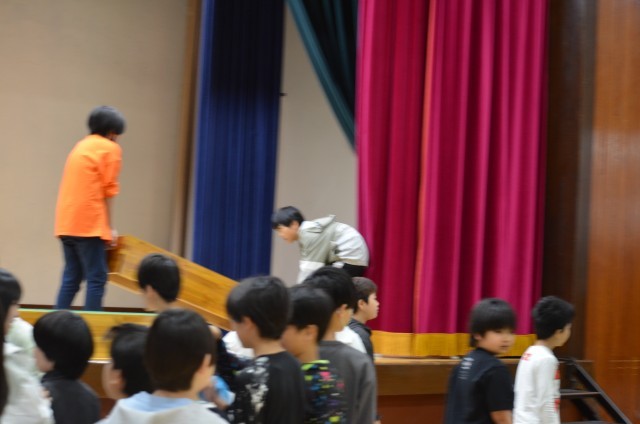 6年生は、1年生を迎える会が終わった後、すぐに体育館の復旧作業をしてくれました。