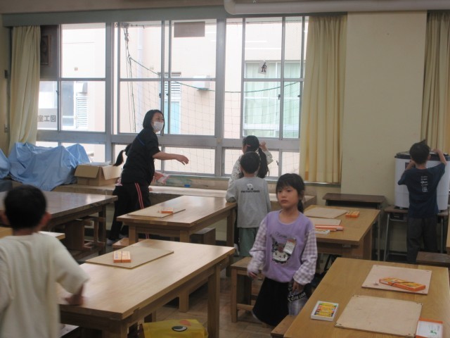 何やら自分たちが描いたキャラクターたちを図工室のあちこちに冒険させていました。