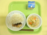 ・五目ちらし寿司 ・鶏肉の照り焼き ・えのきと卵のすまし汁 ・牛乳
