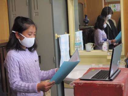 ZOOMにて、終業式を行いました。児童は教室で静かに話を聞いていました。代表の児童は、2学期のふりかえりと3学期の目標を、はっきりと発表することができました。
