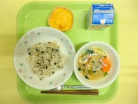 ・あぶたま丼 ・野菜のにんにく醤油ドレッシング ・りんご(サンふじ) ・牛乳