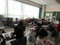 5年生は、外国語の授業でした。今日はテストでした。テストも大事ですが外国の人と楽...