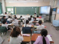 2年生は、算数科の授業でした。九九カードをばらばらに並べて、先生の問題に答える九...