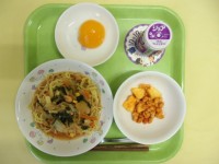 ・洋風卵とじうどん・鉄ちゃんビーンズ・牛乳