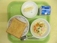 ・黒砂糖食パン・ポテトのミートグラタン・白いんげんのスープ・牛乳