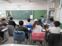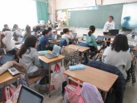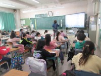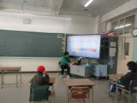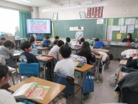 4年生は、外国語活動の授業でした。自分の好きな場所を英語で言います。難しいですが...