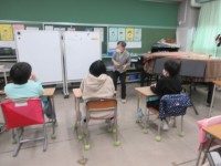 5組Bは、音楽科の授業でした。6文字の言葉をみんなで考え、リズム良く言います。リ...
