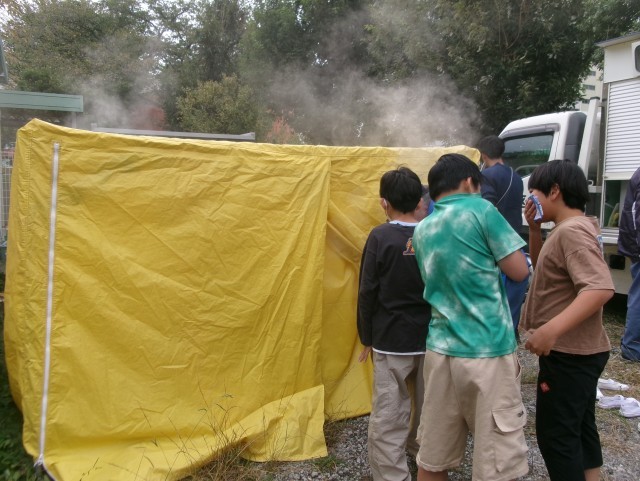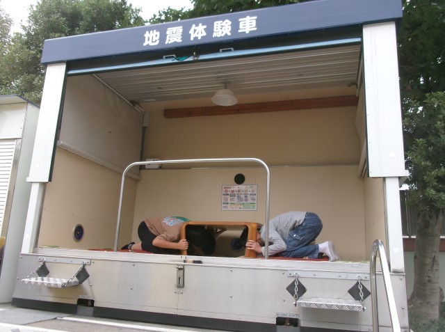 その後5年生は起震車体験と煙ハウスの体験をしました。