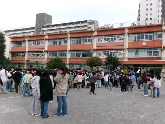10月23日(木)の児童集会は校庭で「〇✖クイズ」をしました。