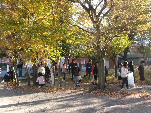 11月21日(金)は1年生と6年生が校庭の落葉掃きをしました。