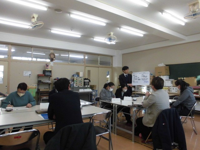 保護者、地域、教職員が2つのグループに分かれて、「令和8年度 教育課程の説明を受けて