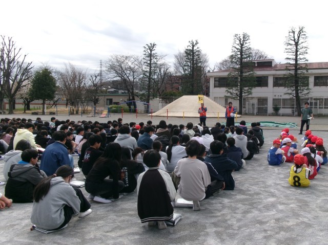 今年度最後の避難訓練だったので、校長先生から一年間を振り返ってのお話と、防災学習に