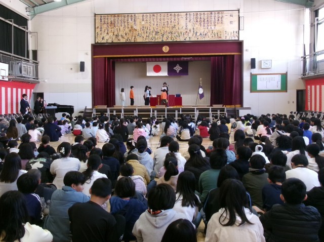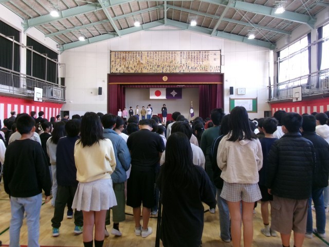 その後校長先生より「1年間を振り返り、自分自身の頑張ったことを褒めましょう」というお話があり、次に児童代表の