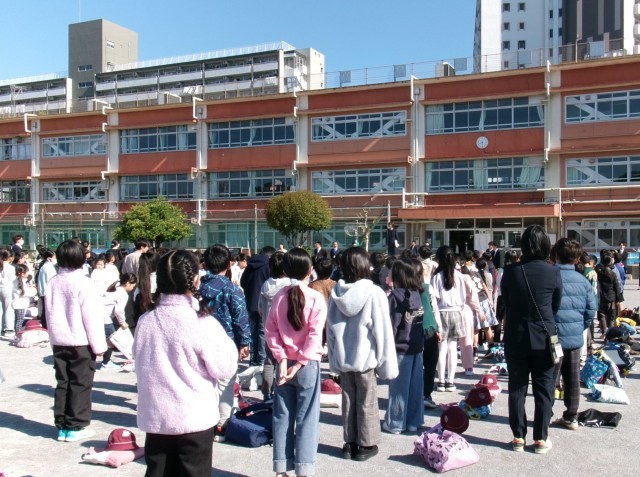 次に新しいクラスの担任の発表があり、歓声が上がっていました。最後に校長先生
