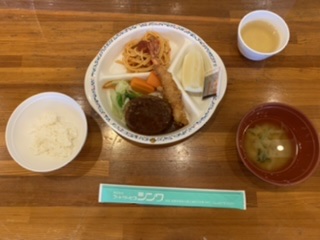 楽しみにしていた夕食の時間です。温かいご飯とお味噌汁をたくさんおかわりしました。