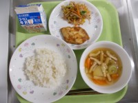 ・鶏ごぼうの炊き込みご飯・魚(さわら)のきのこあんかけ・豆乳仕立ての野菜汁・牛乳