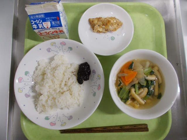 ・ごはん・のりの佃煮・魚(めばる)の三味焼き・根菜汁・牛乳