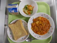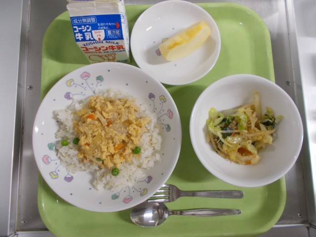 ・変わり親子丼・野菜のごま酢あえ・くだもの(りんご)・牛乳