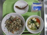 ・ガーリックトースト・コーンクリームシチュー・フルーツパンチ・牛乳