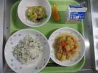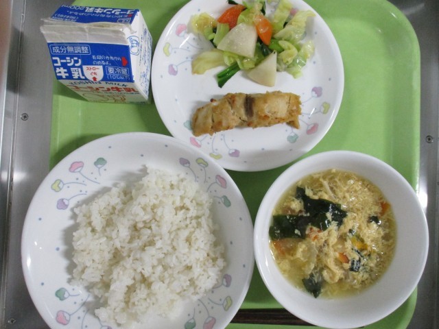 ・ごはん・魚(さわら)のごまみそ焼き・野菜のレモン和え・かきたま汁・牛乳