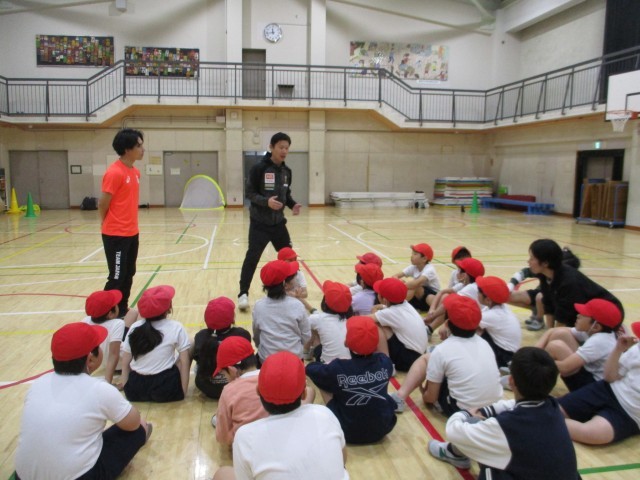 東京2025デフリンピック男子サッカー銀メダリスト、手話通訳士、元デフサッカー監督によるトークショーが行われました。耳が聞こえない中での生活やコミュニケーションの工夫などについて、実体験に基づいてお話をいただき、子どもたちは新しい発見に驚いたり、うなずきながら真剣に聞き入ったりしていました。